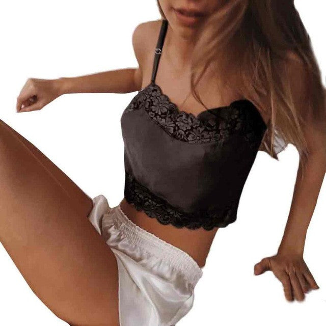 Women Fashion 2017 Crop Top Cropped Crochet Bikini Small Vest Strap Sexy Lace Tank Top Sleeveless Silk Tops#LSIN